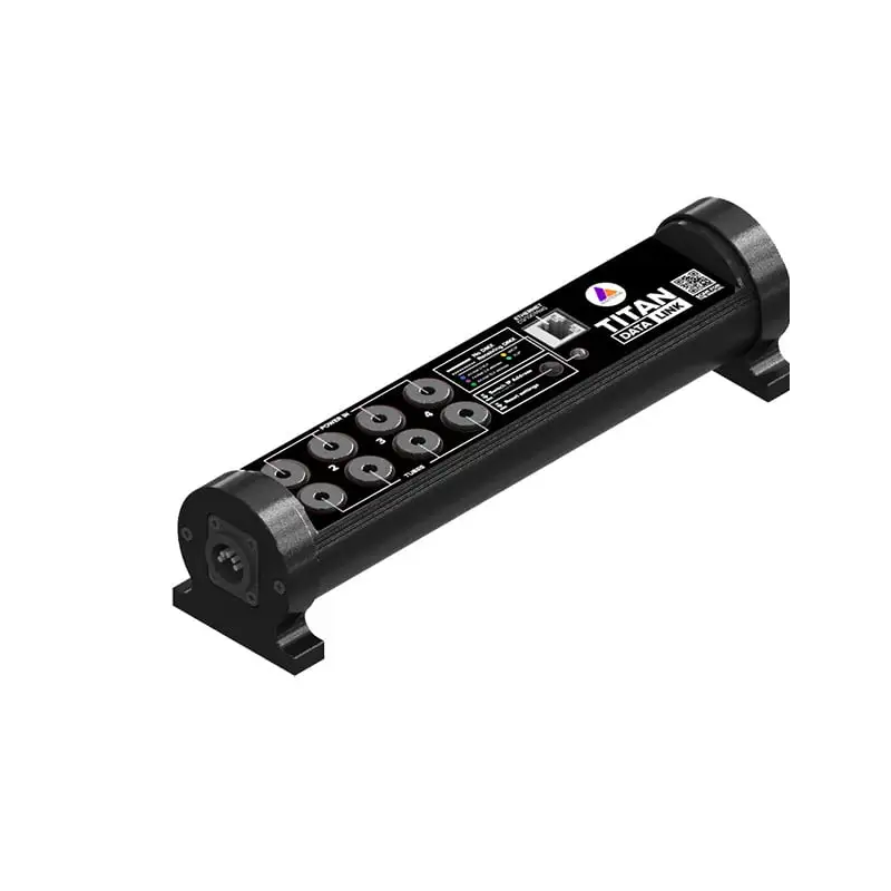 Die Astera Data Link für Hyperion-, Titan- und Helios-Röhrenserien verfügt über eine robuste Aluminiumkonstruktion und sendet kabelgebundenes DMX an diese Leuchten über XLR-DMX-, Art-Net- und sACN-Protokolle. Das für den Innenbereich konzipierte Gerät ermöglicht die Auswahl und Einstellung sowohl der IP-Adresse als auch der Universe-ID.