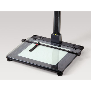 Hergestellt aus hochwertigem Kristallglas zum Andrücken "gewellter" Originale. Kann am Scharnier des Leuchtkastens befestigt werden und lässt sich leicht anheben. Mit verstellbaren Anschlagführungen.