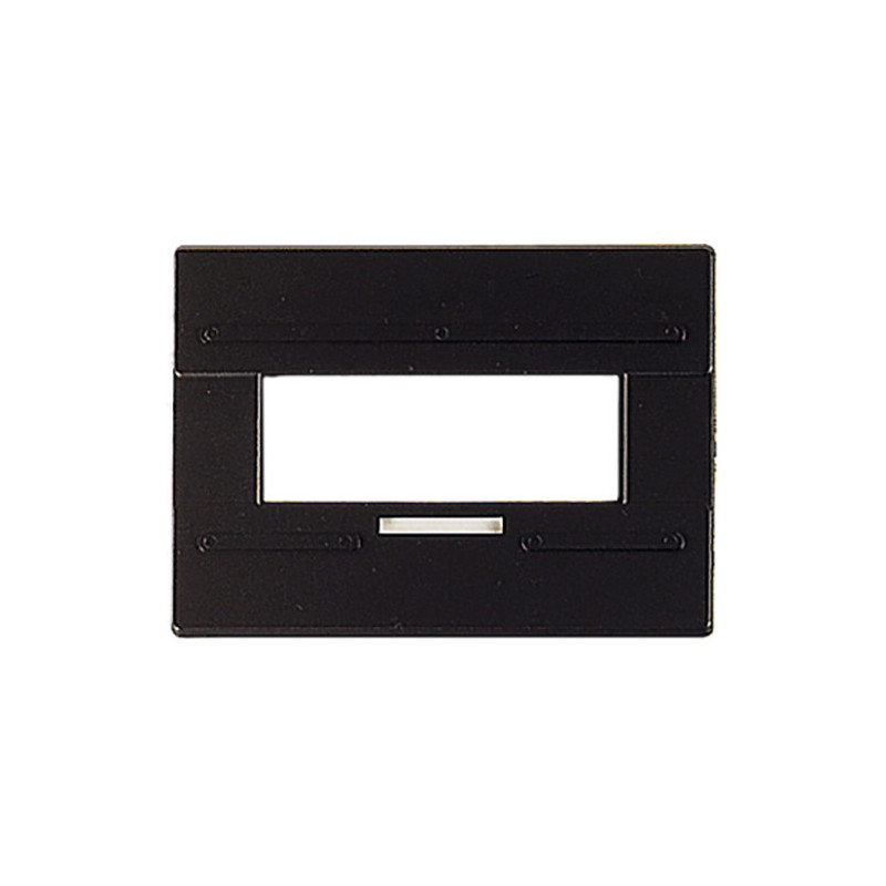 Zum Vergrößern oder Fotografieren eines schwarzen Rahmens um das Bild. Mit Führungsrillen für Filmstreifen und einem Fenster zum Ablesen der Negativnummer.