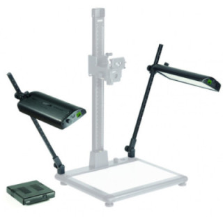 LED-Auflichtbeleuchtungsgerät mit Wärmemanagement, bestehend aus zwei Flächenleuchten für eine gleichmäßige und weiche Ausleuchtung. Geeignet für Copylizer exe.cutive LED und Leuchtplatte exe.cutive LED. Auch als Auflichtbeleuchtung für den TopTable PRO Aufnahmetisch geeignet.