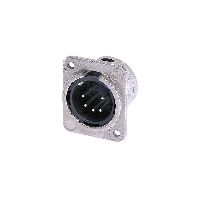5-polige männliche Einbaubuchse, Lötkelche, vernickelt, versilberte Kontakte, M3-Montagelöcher.