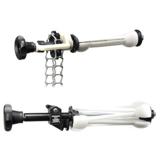 Das Manfrotto 046MCG Expan Drive Kit mit grauer Metallkette ermöglicht ein einfaches Heben und Senken von Hintergrundpapierrollen, ohne die Stativbeine absenken zu müssen. Das System verwendet zwei erweiterbare Technopolymer-Einsätze, um eine einzelne nahtlose Papierrolle zu halten. Das Anziehen auf beiden Seiten ermöglicht es, die Antriebseinsätze von 1,8" auf 3" auszudehnen, um die Rolle von innen fest zu greifen. Eine Seite ist mit einem großen Zahnrad ausgestattet, an dem eine Metallgliederkette befestigt ist, die ein bequemes Heben und Senken der Hintergrundpapierrolle ermöglicht. Die andere Seite verfügt über eine einstellbare Spannungsbremse.