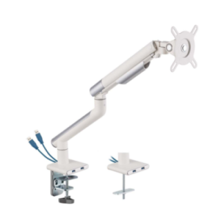 Full Motion Desktop-Halterung für 17"-32" PC-Bildschirm mit 2 USB 3.0-Anschlüssen, Vesa 75x75 oder 100x100, Ultra-verstellbarer Bildschirm, Montage am Tischrand oder durch den Schreibtisch, Zulässiges Gewicht 2 kg min. - 9 kg max., Weiß