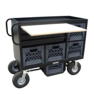 Eigenschaften: 3 vollausziehbare Schubladen mit Push-to-Open-Schubladenführungen (T17 x B27 1/4 x H3 1/4 / T43,2cm x B69,2cm x H8,3cm); ausziehbare Arbeitsplatte mit Push-to-Open-Schubladenführungen (DRAWER-501 LX); Obere Ablage für (3) Milchkisten (T19 1/4 x B42 x H1 1/2 / T48,9cm x B106,7cm x H3,8cm); 4 verschiebbare Milchkistenfächer; Räder: (2) 10" Lenkrollen & (2) 10" Bockrollen