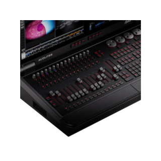 Diamond 7 ist die neueste Ergänzung zur renommierten Diamond-Serie von Beleuchtungskonsolen von Avolites. Diese kreative Konsole, die in der Hierarchie der Avolites-Produkte für visuelle Designer direkt unter dem Diamond 9 angesiedelt ist und viele technische und Design-Lösungen übernimmt, verfügt über 15 Fader und 2 14-Zoll-Touchscreens. Die Kontrolloberfläche ist gut durchdacht, flexibel und äußerst funktional; diese sorgfältige Studie jedes kleinen Details ermöglicht es Lichtdesignern, ihre Beleuchtungskonfigurationen mit Leichtigkeit und Unmittelbarkeit zu erstellen, zu programmieren und zu steuern. Die Knopfkappen, Fader, Encoder-Knöpfe, Encoder-Räder und das Pegelrad wurden exklusiv für diese Konsole hergestellt. Hier sind die Hauptmerkmale der Kontrolloberfläche: 2 kapazitive 14"-Haupt-Touchscreens, 850 nits, 1920 x 1200 Pixel, mit einstellbarer Helligkeit 1 kapazitiver 4,3"-Touchscreen, 850 nits, 800 x 480 Pixel für Makros und Arbeitsbereich, mit einstellbarer Helligkeit 15 berührungsempfindliche motorisierte Fader mit Faderkappe Doppelter berührungsempfindlicher motorisierter Cue-Listen-Masterfader mit 9 Tasten RGB-Fader-Anzeige 15 berührungsempfindliche hochauflösende Playback-Encoder mit Push-Funktion RGB-Encoder-Anzeige 60 dedizierte C&K-Tasten mit positivem taktilem Feedback, um Ihnen bei der präzisen und intuitiven Steuerung von Beleuchtungsfunktionen zu helfen Unabhängige Seitenwechsel für jeden Playback-Bereich 10 hintergrundbeleuchtete Makro-/Ausführungstasten und 10 Soft-Makro-Tasten mit On-Screen-Beschriftung Makro-Programmierungstasten, alle RGB-hintergrundbeleuchtet, Cherry MX Low Profile-Schalter mit kurzem Hub 5 benutzerdefinierte RGB-hintergrundbeleuchtete optische Encoder Dediziertes Pegelrad und On-Screen-Pegelanzeige Vollständig anpassbare und hintergrundbeleuchtete QWERTY-Tastatur (in einer Schublade) Unterstützt einen zusätzlichen externen Touchscreen über Display Port mit 1920 x 1080 Pixeln Die Konstruktion ist kompromisslos: Zunächst ist das gesamte Chassis aus Aluminium, um das Gewicht zu reduzieren. Das Klapp-LCD-Panel ermöglicht reduzierte Transportabmessungen, mit einem Verriegelungsmechanismus und einem Bildschirmpanel-Scharnier, das in 6°-Schritten von –90 bis 155° zur Vertikalen einstellbar ist. Alle Bildschirme sind eingelassen. Es gibt auch eine bequeme Armstütze. Die Konsole unterstützt generatives, animationsbasiertes Pixel-Mapping, Quicksketch-Beschriftung für extreme Anpassung, leistungsstarkes Multi-User-Networking mit jeder anderen Titan-Konsole, erweiterte Cue-Listen mit Makro-Unterstützung, Tracking, Auto-Loads, Timecode und mehr. Die DMX-Kapazität ist synergiefähig und kann mit Titan Net Prozessoren erweitert werden, um die DMX-Kanalkapazität zu erhöhen. Schließlich passt der Diamond 7 in einen Pelicase Air 1615 Flightcase, mit einem Gesamtgewicht unter dem europäischen Aufgabelimit (23 kg) für einfachen Transport auch per Flugzeug. Hinweis: Es ist notwendig, auch das entsprechende Gehäuse mit der Konsole zu kaufen (Code 09-01-7215).