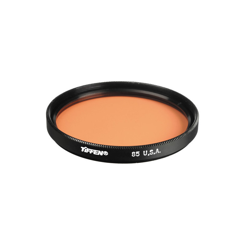 Der Tiffen 82 mm 85 Farbkonversionsfilter hilft, die Farbtemperatur von 5500 auf 3400K zu reduzieren und ermöglicht die Verwendung von Tungsten-abgeglichenem Film bei Tageslichtbedingungen. Der Wärmeeffekt dieses Filters erfordert eine Belichtungserhöhung von 0,6 Blendenstufen für normale Ergebnisse.