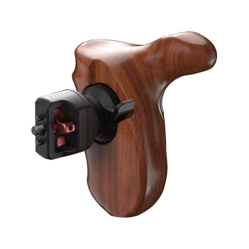 Dieser Holzgriff verfügt über ein ergonomisches Design für maximalen Komfort bei der Verwendung einer Kamera jeder Größe. Er kann über optionales Seitengrifzubehör an Ihrem Kamera-Cage befestigt werden: Typ VIII (NATO), Typ X (ARRI Rosette) oder Typ XI (1/4″-20 mit Positionierungsstiften). Ein Entriegelungsknopf an der Seite der Halterung ermöglicht es Ihnen, den Winkel des Griffs einfach anzupassen, um die perfekte Aufnahmeposition zu finden und bei der Anpassung für verschiedene Aufnahmen schnell neu zu positionieren.