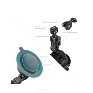 Dieses SC-1K tragbare Saugnapf-Halterungsset von SmallRig ist sowohl für Actionkameras als auch für Smartphones dank des mitgelieferten Befestigungszubehörs konzipiert. Es lässt sich mit einem robusten Saugnapf und einem verstellbaren Gelenkarm an glatten Oberflächen befestigen. Ein Schnallenverschluss ermöglicht die Installation des Saugnapfs mit einem einzigen Druck auf saubere, glatte Oberflächen und hat eine statische Tragfähigkeit von 1 kg.
