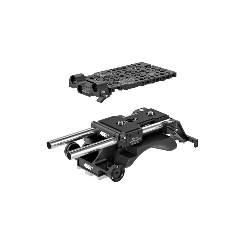 Dieses Support-Set beinhaltet eine Broadcast-Style, VCT-kompatible Grundplatte mit Schulterpolster und Handgriff-Rosetten, eine 15mm LWS-Brückenplatte und Adapter, eine obere Käseplatte und ein 9,4" Paar leichte 15mm Stangen.