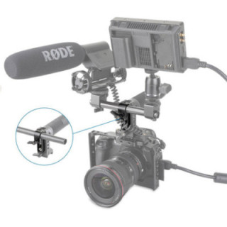 Der SmallRig 1549 ist eine Einfach-Schienenklemme, die zur Stangenerweiterung an einer Platte, einem Käfig oder einem Griff montiert werden kann. Sie ist für 15-mm-Stangen geeignet.