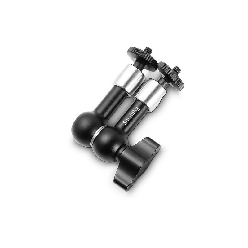 Er ist jeweils mit 1/4"-Schrauben an jedem Ende ausgestattet, sodass Sie einen Monitor über die 1/4"-Schraube an einem Ende befestigen und Zubehör mit 1/4"-20-Gewindebohrungen am anderen Ende anbringen können, wie z.B. einen Käfig, eine NATO-Schiene 1973, eine 15mm-Stange 1182 und eine Schnellspann-Stangenklemme 1976 usw. Mit einer 1/4"-Schraube montiert, hilft ein Gummipolster, Kratzer am Monitor zu vermeiden und ihn fester zu befestigen. Er verfügt über eine ergonomische Flügelmutter für großen Komfort, mit der Sie alle Winkel nach Ihren Bedürfnissen einstellen können.