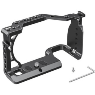 Dieser SmallRig Cage, passend für die Sony a6600 Kamera, bietet eine Vielzahl von Montagemöglichkeiten für Ihre a6600, um ein Mikrofon, einen Griff, einen Monitor oder anderes Zubehör hinzuzufügen. Ihre Kamera wird über die 1/4"-20-Gewindeschraube am Käfig befestigt, und die mitgelieferte M2,5-Schraube sichert Ihre Kamera am Käfig durch die Schulterriemenöse Ihrer Kamera. Die Gummipads und die beiden Befestigungsschrauben helfen zu verhindern, dass sich Ihre Kamera im Käfig dreht. Er verfügt über mehrere 1/4"-20-Gewindebohrungen sowie eine 3/8"-16-Bohrung mit ARRI-Anti-Rotations-Kerben.