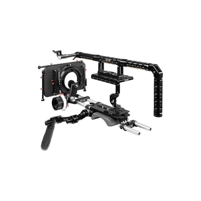 Dieses Set ist für die Kompatibilität mit der Sony FX9 konzipiert. Es beinhaltet einen maßgeschneiderten Cage mit Befestigungsoptionen und einer Arri-Rosette, sowie eine Baseplate mit Schulterstütze, Arri-Rosette und 15mm-Stangensystem. Zusätzlich enthält das Set einen linken Griff mit Push-Button-Technologie. SHAPE ist bekannt für seinen Push-Button-Griff, der mittlerweile von vielen Branchenprofis verwendet wird.