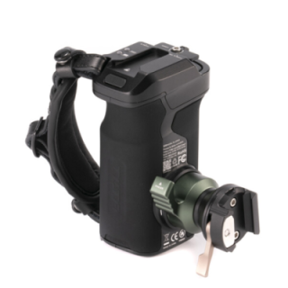 Der Griff wird über seine NATO-Schienenklammer befestigt und verfügt über zwei USB-C-Anschlüsse, von denen einer speziell für PD (Power Delivery) entwickelt wurde, über eine Kaltschuhhalterung und ein 1/2"-20 Gewinde mit Positionierungsstiften für die Montage von Zubehör sowie über einen Inbusschlüssel zum Einstellen der integrierten M3-Schrauben, der magnetisch in einem speziellen Schlitz unter dem Griff befestigt ist. Ein Freigabehebel ermöglicht es, den Griff in einem Bereich von 360° auf den gewünschten Winkel einzustellen.