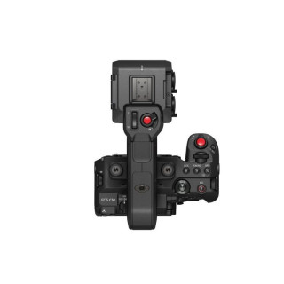 Ihr abnehmbarer oberer Griff umfasst zwei Standard-XLR-Audioeingänge, eine Aufnahme-Start/Stopp-Taste und ein integriertes Zoomobjektiv. Im Fotomodus kann die Kamera auch 32-Megapixel-Standbilder aufnehmen.