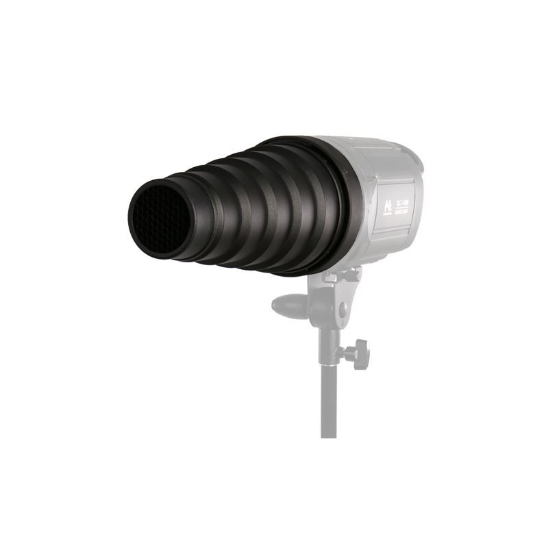 Der konische Snoot Falcon Eyes FEA-CS ist mit Falcon Eyes Studioblitzen mit Bajonettanschluss kompatibel und ermöglicht es Ihnen, das Licht zu lenken und zu kontrollieren.