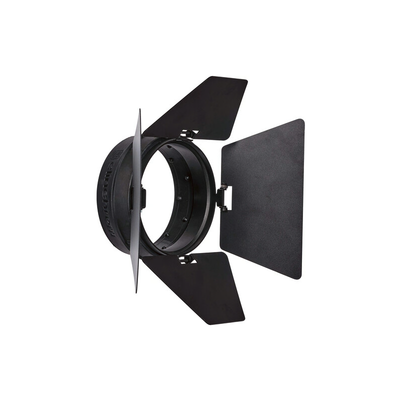 Die OCF Barndoors für ONE Off-Camera Strobe Light von Elinchrom ist ein langlebiges Metallabschirmklappen-Set mit vier trapezförmigen Blättern.