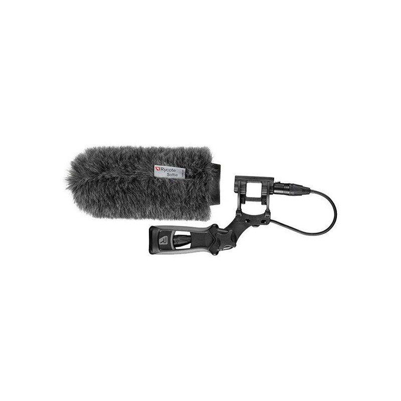 The Rycote 7" Classic Softie with Lyre Mount and Pistol-Grip Kit conveniently provides both a durable pistol-grip-style mount and short-hair Softie, eliminating noise caused by windy conditions in the field.