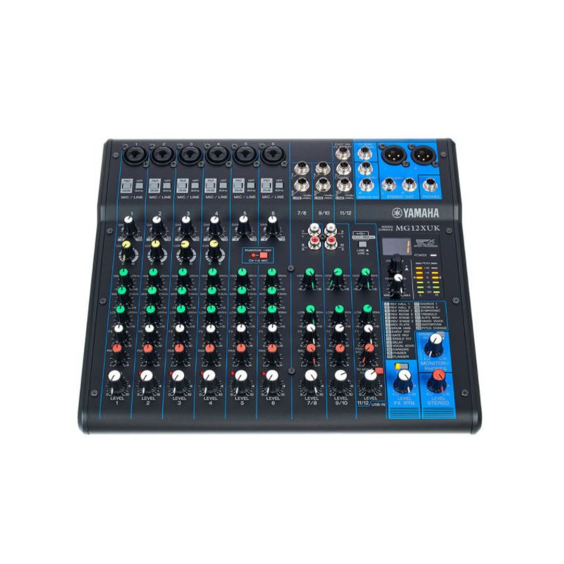 Das Yamaha MG12XUK Analogmischpult baut auf dem Erfolg des renommierten MG12XU auf und ersetzt die Master-Kanal-Fader durch Drehregler, wodurch ein insgesamt kompakteres Mischpult entsteht. Das MG12XUK ist darauf ausgelegt, einen außergewöhnlich transparenten Klang und ein intuitives, praktisches Mischererlebnis zu bieten. Das MG12XUK ist mit 12 Eingangskanälen ausgestattet, darunter 6 Mikrofonkanäle mit D-PRE-Vorverstärkern, sowie unabhängigen 3-Band-EQs, 1-Knopf-Kompressoren, Pad-Schaltern und schaltbarer +48V Phantomspeisung. Dieses Yamaha Analogmischpult hat ein intuitives Layout und ein robustes Metallgehäuse, das den anspruchsvollen Bedingungen sowohl bei Live-Auftritten als auch in Studioumgebungen standhalten kann. Das Yamaha MG12XUK verfügt über eine integrierte USB-Audioschnittstelle, die es Ihnen ermöglicht, direkt auf Ihren Computer aufzunehmen und 24-Bit/192kHz-Audio wiederzugeben. Die mitgelieferte Version der Cubase AI DAW-Software ermöglicht es Ihnen, hochauflösende Spuren aufzunehmen und zu bearbeiten. Dieses Modell verwendet Drehregler anstelle von Fadern, ähnlich wie das ursprüngliche MG12XU. Dies ermöglicht ein kompakteres Design bei gleichzeitiger Beibehaltung von 12 Audiokanälen und anderen technischen Merkmalen, die mit dem MG10XUF identisch sind.