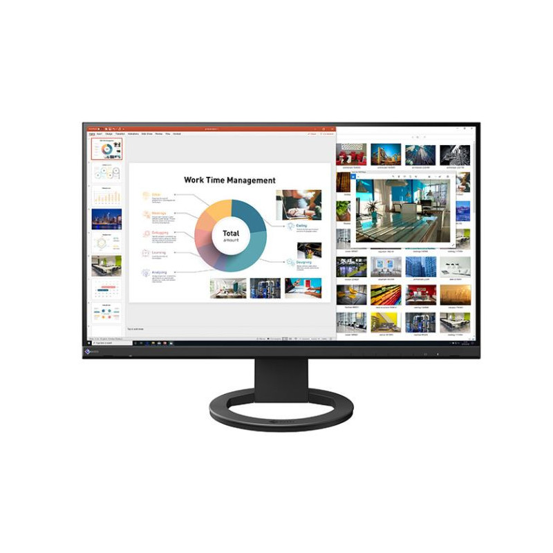 Der EV2760 verwendet ein 27-Zoll-IPS-Display mit WQHD-Auflösung (2560 x 1440), das 78% mehr Pixel bietet als herkömmliche Full-HD-Monitore (1920 x 1080). Sie können problemlos mehrere Fenster auf dem Bildschirm öffnen, um effizient multitasking zu betreiben. Darüber hinaus verfügt er über ein rahmenloses Design mit einer Breite von nur 611,7 mm, einen neuen flexiblen Standfuß mit großem Einstellbereich und einer reduzierten Tiefe für einen aufgeräumteren Schreibtisch.