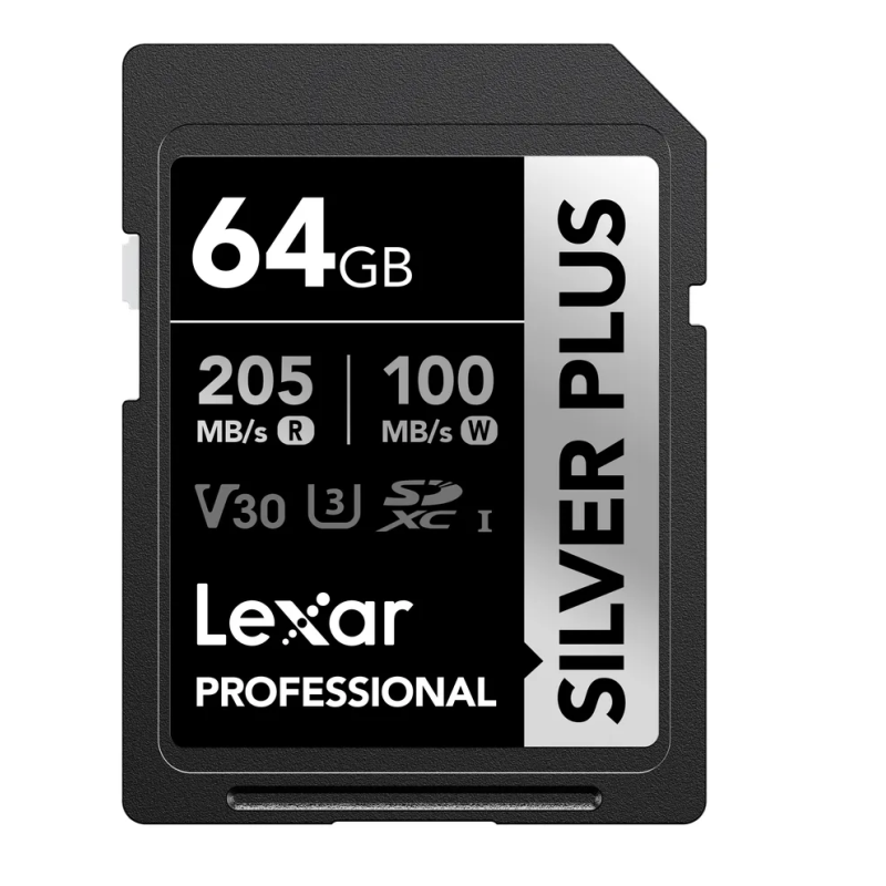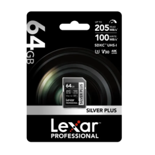 The Lexar Professional SILVER PLUS SDXC UHS-I card features exceptional read/write speeds of up to 205MB/s and 150MB/s, and supports burst shooting and seamless recording of FULL HD and 4K videos.