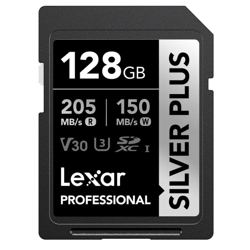 The Lexar Professional SILVER PLUS SDXC UHS-I card features exceptional read/write speeds of up to 205MB/s and 150MB/s, and supports burst shooting and seamless recording of FULL HD and 4K videos.