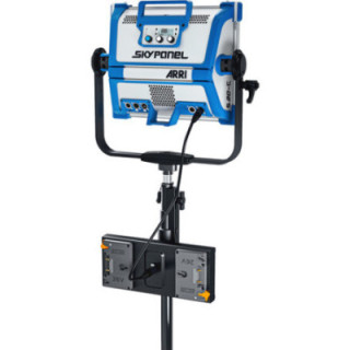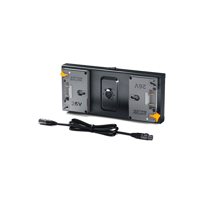 Use this 26V Dual Mounting Plate from Anton Bauer to power the ARRI SkyPanel S-30C at 100% maximum or the S-60C at 50% via the XLR4 connector using two 26V Gold Mount Plus batteries.
