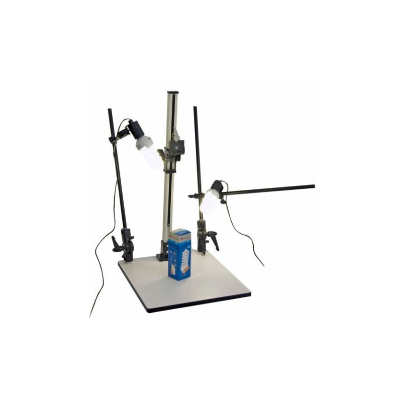 Der Falcon Eyes CS-730 Reprostand ist mit 2 Lampenhaltern ausgestattet, die für die gewünschte Beleuchtung überall um den Tisch herum platziert werden können.