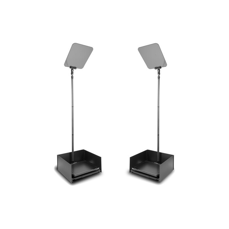 Stagepro Präsidenten-Teleprompter-Paar, tragbar und leicht, mit 17" 400 nit Pro-Monitoren mit 3G-SDI/HDMI-Eingängen, Carbonfaser-Stangen, optischem 65/35 Beamsplitter-Glas und Telescroll-Software