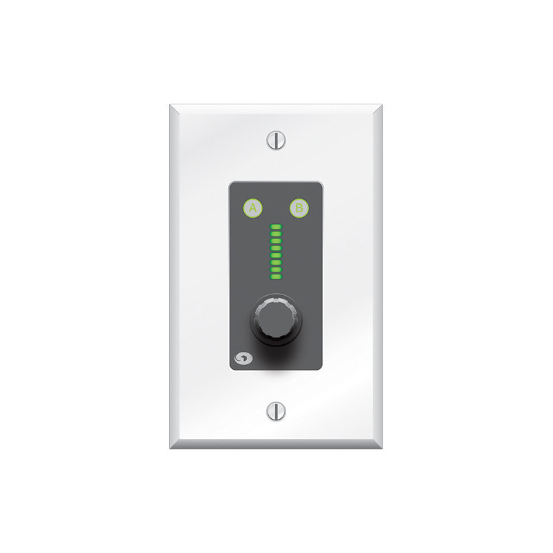 Ein Dreh-/Druckgeber für die einfache Steuerung von ein oder zwei Parametern (typischerweise Lautstärke), mit einer 8-Segment-LED-Skala plus zwei zusätzlichen LEDs zur Anzeige des aktuell gewählten Parameters. Programmierbarer Ruhemodus für Dimming in lichtempfindlichen Umgebungen.