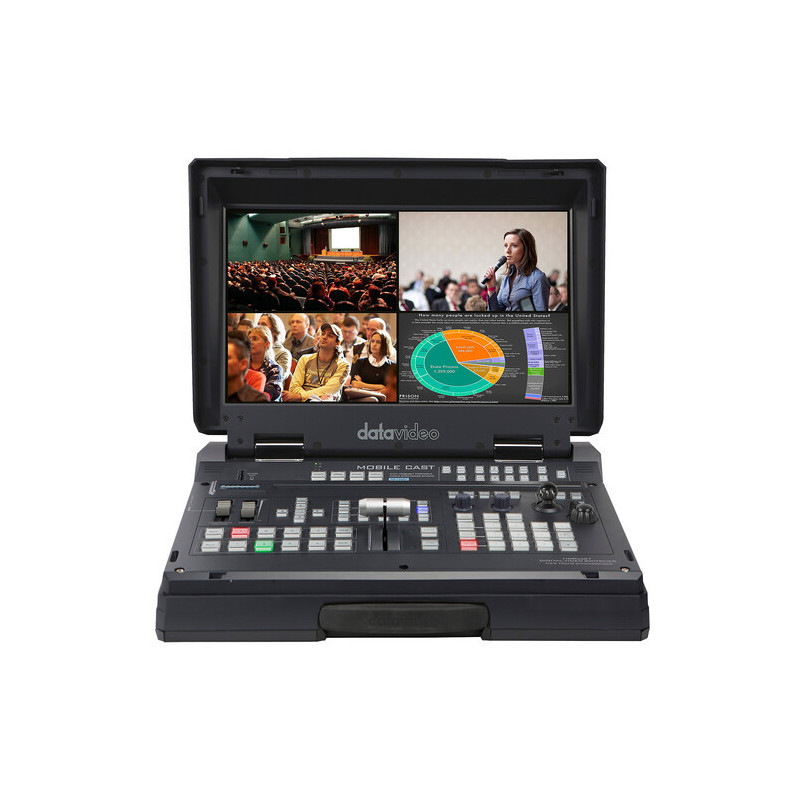 Machen Sie Ihre Übertragung mobil mit diesem Datavideo HS-1600T Mark II 4-Kanal HD/SD/HDBaseT tragbaren Video-Streaming-Studio. Dieses mobile Studio verwendet HDBaseT-Technologie zur Steuerung von bis zu drei Datavideo PTZ-Kameras während des H.264-Video-Streamings im Web. Es verfügt über drei HDBaseT-Eingänge, die angeschlossene Kameras steuern und Videoeingänge akzeptieren können, sowie einen HDMI-Eingang für eine zusätzliche Videoquelle. Drei HDMI-Programmausgänge ermöglichen den Anschluss von Monitoren zur Anzeige Ihres Programms, ein HDMI ist für die Grafikausgabe vorgesehen, und ein RJ45-LAN-Ausgangsanschluss für Streaming ermöglicht Live-Streaming über das Internet mit mindestens Cat-6-Kabel. Je nach Streaming-Bitrate können Sie auch auf einer optionalen SD-Karte aufzeichnen.