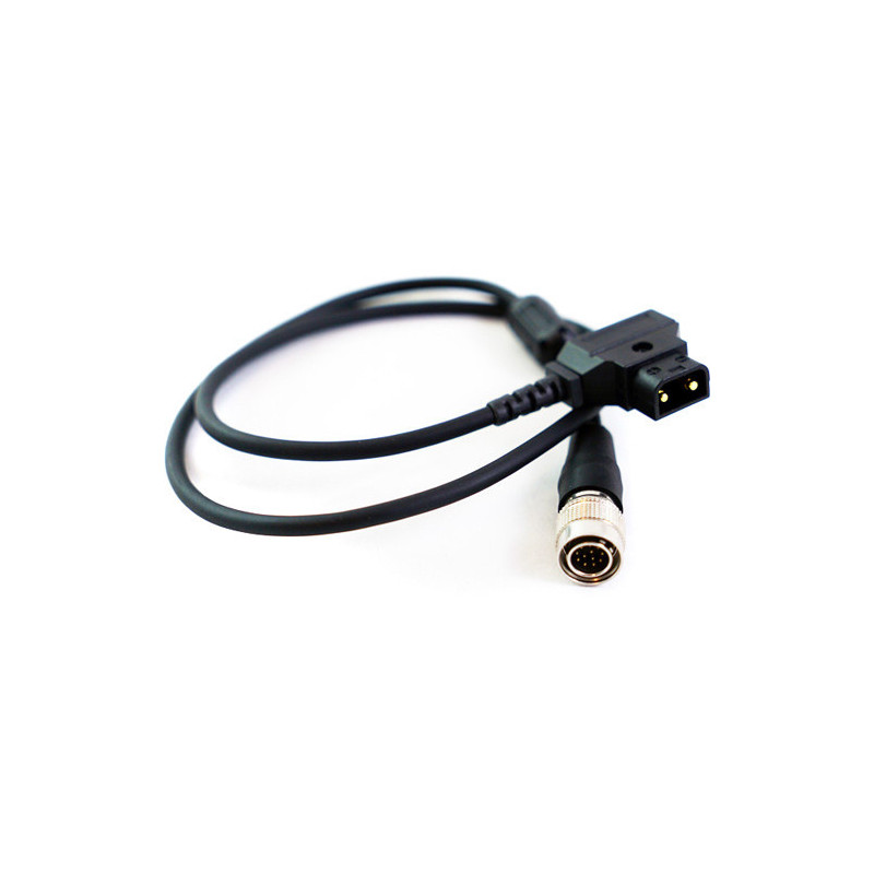 Verwenden Sie dieses Angenieux PWD-2 Hirose 12-polig zu D-Tap Stromkabel, um die Cine Servo MSU-1 Einheit an einem Objektiv der EZ-Serie mit Strom zu versorgen. Ein Ende des Kabels ist mit einem 12-poligen Hirose-Anschluss und das andere Ende mit einem D-Tap-Anschluss ausgestattet. Das Kabel ist 27,6 Zoll lang.
