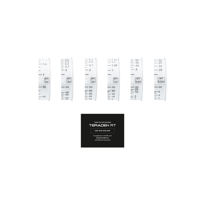 Rüsten Sie Ihren CTRL.1-Objektivcontroller mit der Teradek RT Objektivkartierung für CTRL.1 auf, die auch fünf vormarkierte Fokusringe und einen vormarkierten Blendenring enthält.