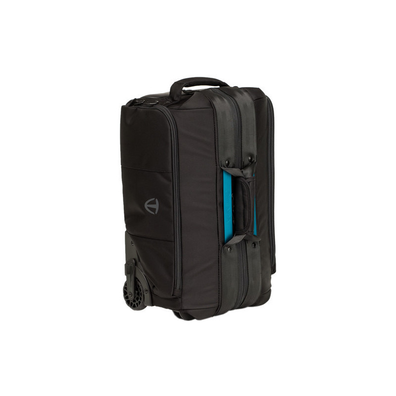 Der Cineluxe Roller 21 von Tenba ist eine Rolltasche, die entwickelt wurde, um professionelle Camcorder, Filmkameras und ENG-Ausrüstung mit einer Matte Box und anderem Zubehör aufzunehmen und zu schützen. Er verfügt über eine "Arztkoffer"-Öffnung in der Mitte, die einfachen Zugang zu der gesamten gelagerten Ausrüstung ermöglicht und es der Tasche erlaubt, ihre Grundfläche beizubehalten, wenn sie geöffnet ist - anstatt ihre Größe zu verdoppeln. Der Cineluxe Roller 21 ist mit stoßdämpfenden Rädern ausgestattet, die flüssige Bewegung ermöglichen, und die Räder sind austauschbar, damit Sie planen können, die Tasche länger zu behalten. Das Äußere der Tasche besteht aus wasserabweisendem Nylon, und die Basis ist wasser- und abriebfest. Die Basis ist auch mit TPU beschichtet und kann nach Kontakt mit feuchten und schmutzigen Oberflächen leicht abgewischt werden. Der Cineluxe Roller 21 wird mit zwei starren und flexiblen Flex-Core-Trennwänden (die eine Aluminiumfolie enthalten) sowie weichen gepolsterten Hüllen zum Schutz Ihrer Objektive, einem Objektivkissen und einem Kamera-Sicherheitsgurt geliefert. Eine Reißverschlusstasche zur Aufbewahrung von Zubehör ist enthalten, und es gibt auch eine Tasche über die gesamte Länge an der Vorderseite der Tasche für Richtmikrofone, Matte-Box-Flaggen, Batterien und anderes Zubehör. Der Cineluxe Roller 21 bietet einen ausziehbaren Griff zum Rollen der Tasche auf ihren Rädern und verfügt zusätzlich über Griffe oben zum Tragen der Tasche in aufrechter Position und an der Seite zum Tragen in horizontaler Position.