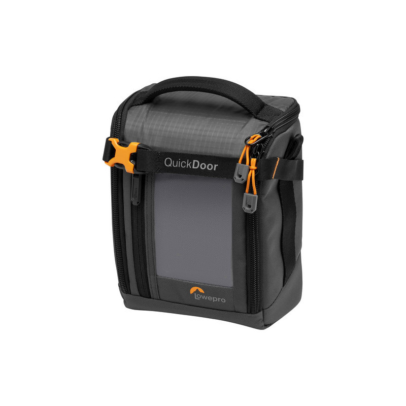 Lowepro designed their gray GearUp Creator Box Medium II as an ideal bag-in-a-bag travel solution for camera gear and/or small delicate electronic devices. Simply pack it and store it in your larger camera bag to organize and protect your gear. The bag is made of nylon that is resistant to water and tearing, and is padded for extra protection. Its brightly colored orange interior makes it easy to see what's inside in low light, so you won't have to root around to find what you need. Measuring 7.1 x 5.3 x 3.1" and weighing just 7.1 ounces, this medium bag will hold a full-frame CSC or crop-sensor CSC camera with a zoom lens attached plus an extra lens. A two-way zipper wraps around three sides of the bag to give you full access to the compartment, or you can use the QuickDoor strap that stops the zipper from opening all the way giving you access to just the top allowing you to draw your camera quickly without everything else inside coming out or shifting. A small pocket on the inside will hold an extra memory card where you can find it fast and another front pocket will hold a lens cloth or filter.|