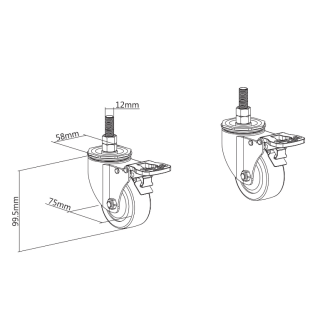 Kimex - Set of 2 M12 Castors for 031 Range TV Stand