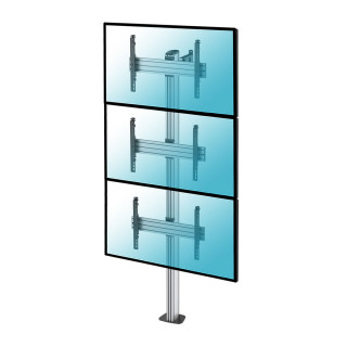 Le support sur pied KIMEX 031-1300K3 est conçu pour accueillir trois écrans TV de 40 à 65" répondant aux normes VESA (200x200 min, 600x400mm max), jusqu'à 50 kg.