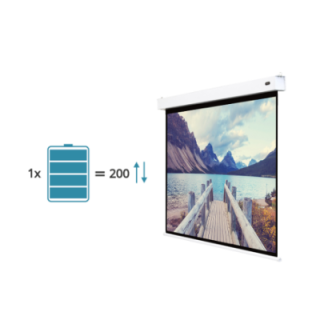 L'écran de projection motorisé KIMEX 047-1516 fait partie d'une gamme d'écrans de projection alimentés par batterie conçus pour offrir la plus grande facilité d'installation et une finition esthétique.
