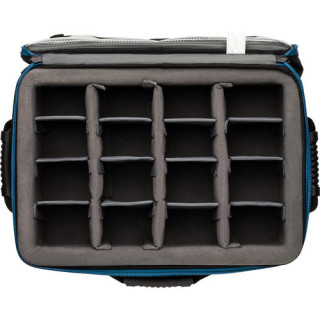 Séparateurs réglables renforcés avec tissu auto-agrippant. Les séparateurs gris sont flexibles et les séparateurs bleus sont rigides pour personnaliser les options de rangement.