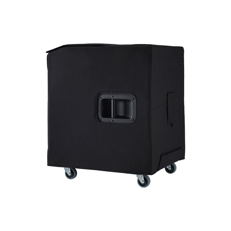 Grâce à une ouverture "toit" permettant d'effectuer des réglages sur le panneau d'accès arrière, la housse peut rester en place pendant l'utilisation. Habilement conçue, la partie avant se replie et se fixe au sommet de l'enceinte, tandis que la couche de filet acoustiquement transparente assure la résistance à l'eau. La housse dispose d'une poche intérieure pour ranger les accessoires et d'une fente pour la poignée permettant de la transporter sans retirer la housse.