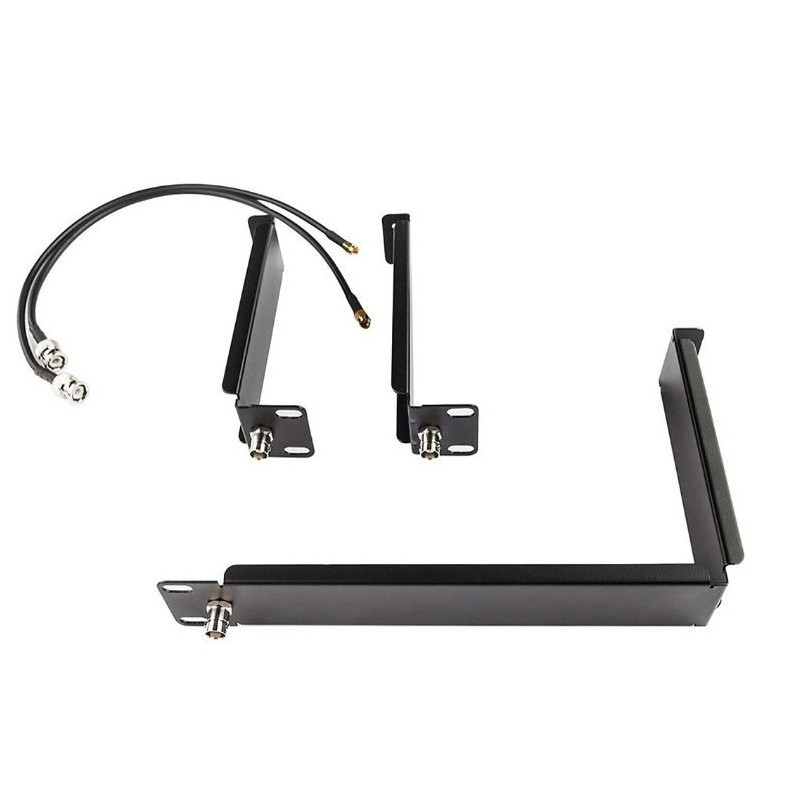 Le kit de montage en rack Line 6 Relay G55/V55 vous permet de monter facilement un seul récepteur ou deux récepteurs côte à côte dans un rack. Le kit comprend deux oreilles de rack courtes, une oreille de rack longue, un adaptateur de jonction, des câbles d'extension BNC vers SMA et des adaptateurs de montage sur panneau SMA vers BNC pour le montage frontal des antennes, des vis de rack métriques (M6) et impériales (10-32), et une clé Allen de 7/64" pour l'installation. Compatible avec tout système d'antenne BNC Line 6 ; antennes non incluses. Pour plusieurs récepteurs, le kit de diviseur d'antenne G55/V55 ou le système de distribution d'antenne XD-AD8 est recommandé.