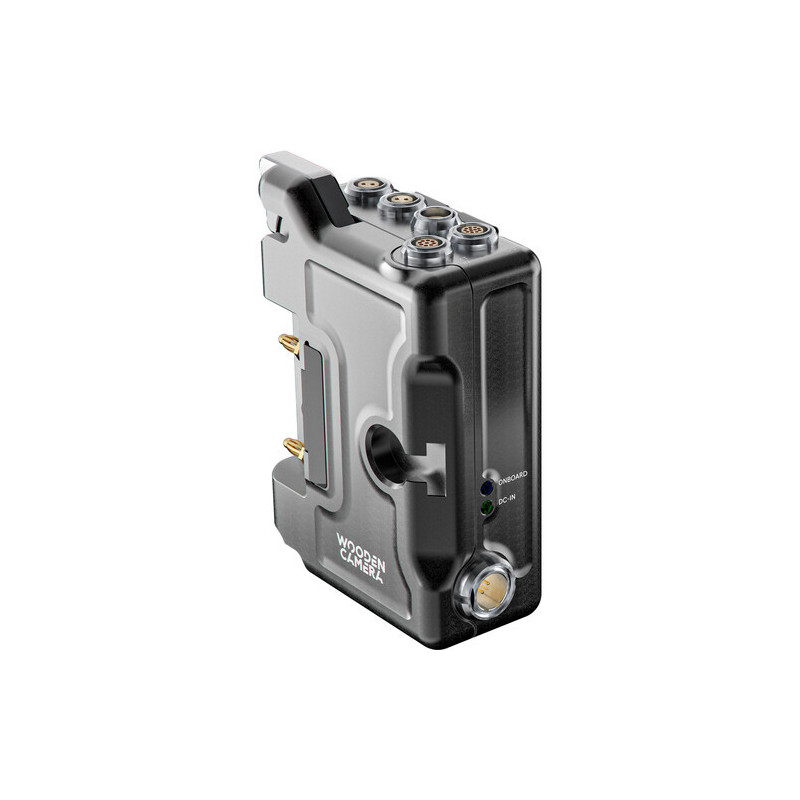 The unit mounts onto the V-mount of your camera and connects to the camera via the included 9-pin EXT cable, and it provides a plate for a separately available Gold mount battery.