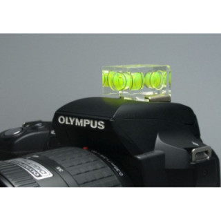 With twin levels (yellow-green liquid) and mounting feet for landscape and portrait position. Transparent housing. Attaches to the camera's accessory shoe.