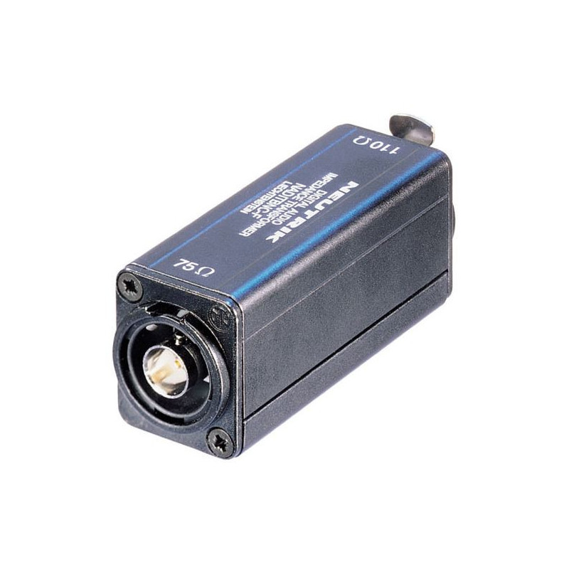 Connecteur châssis XLR femelle entrée 110 Ohm - sortie BNC femelle 75 Ohm. Interface pour lignes symétriques et coaxiales.