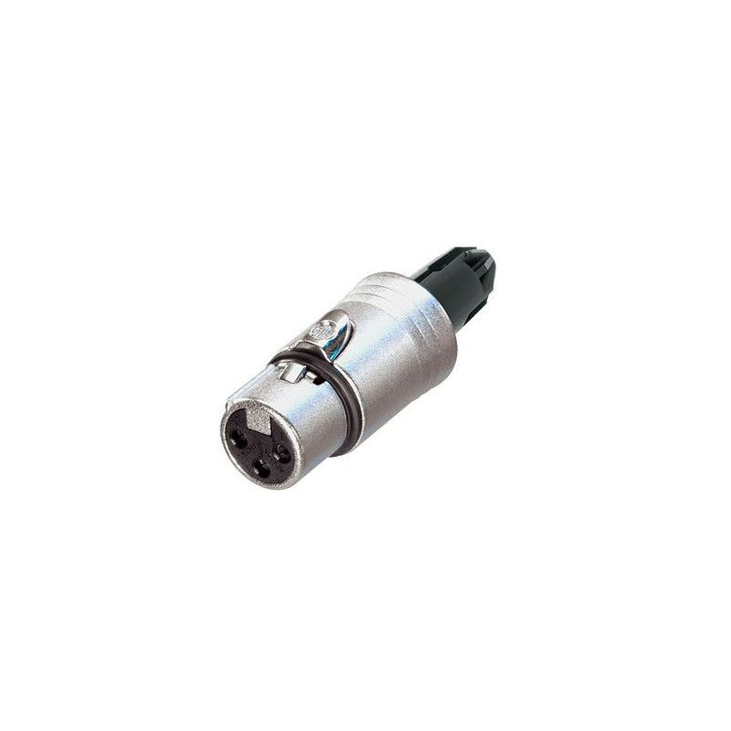 Connecteur de câble femelle 3 pôles avec boîtier nickelé et contacts argentés, sans manchon. Le manchon doit être commandé séparément.