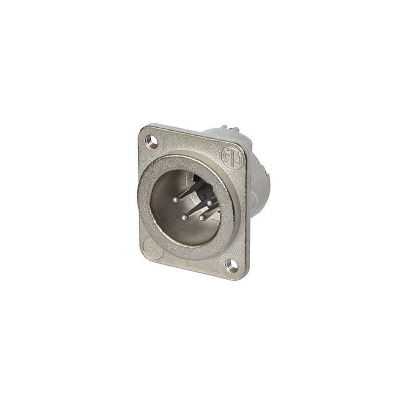 Connecteur mâle 4 pôles, cosses à souder, boîtier en nickel, contacts en argent, trous de montage M3