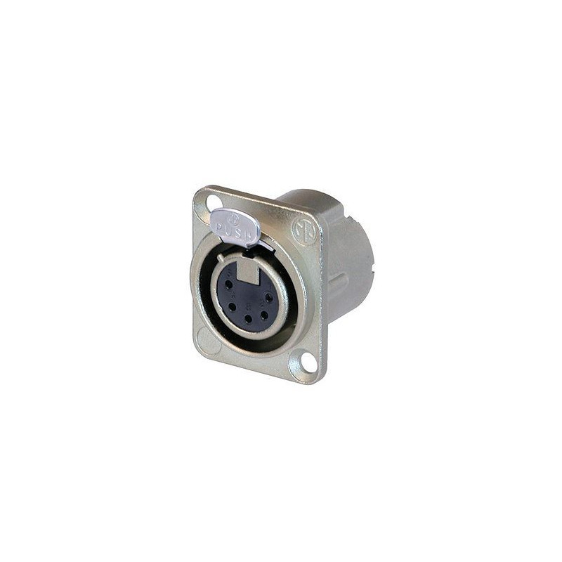 Embase femelle 5 pôles, coupelles à souder, boîtier nickelé, contacts argentés.