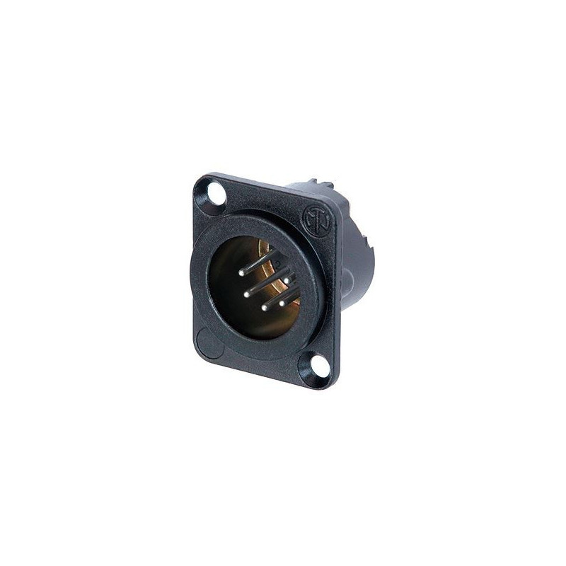 Embase mâle à 5 pôles, coupelles à souder, boîtier métallique noir, contacts argentés.