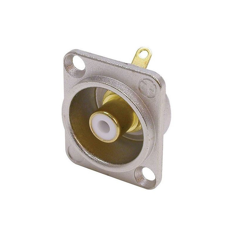 Prise phono Contrik dans un boîtier en forme de D nickelé, blanc