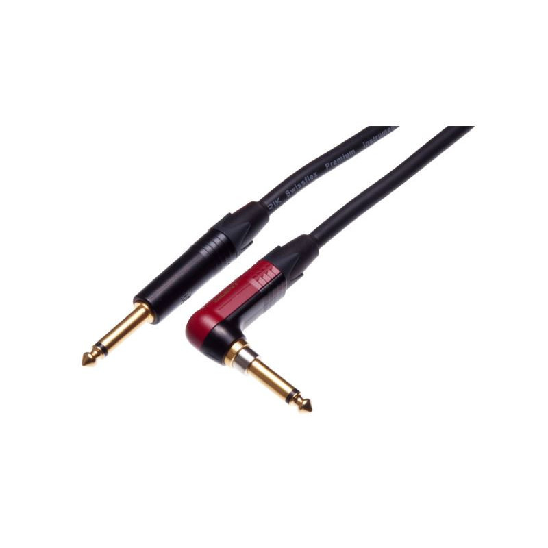 Ces câbles d'instrument noirs sont assemblés avec des connecteurs Neutrik NP2X-BAG et NP2RX-AU-SILENT. Les manchons sont noirs.